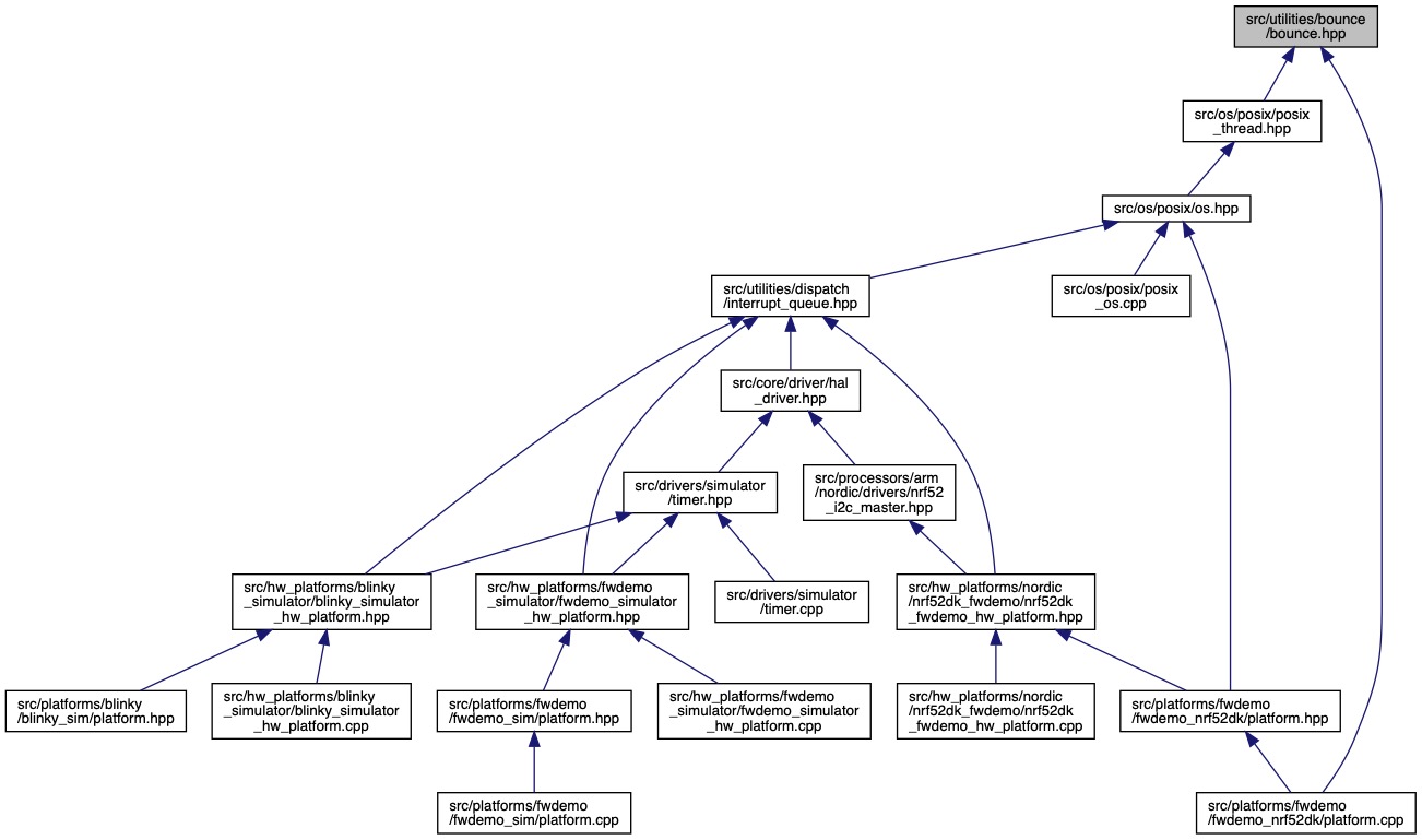 The BOUNCE() macro simplifies the creation of a bounce function to a class member for use with C-style callbacks. The BOUNCE() macro must be paried with a this pointer to get to the proper class instance.