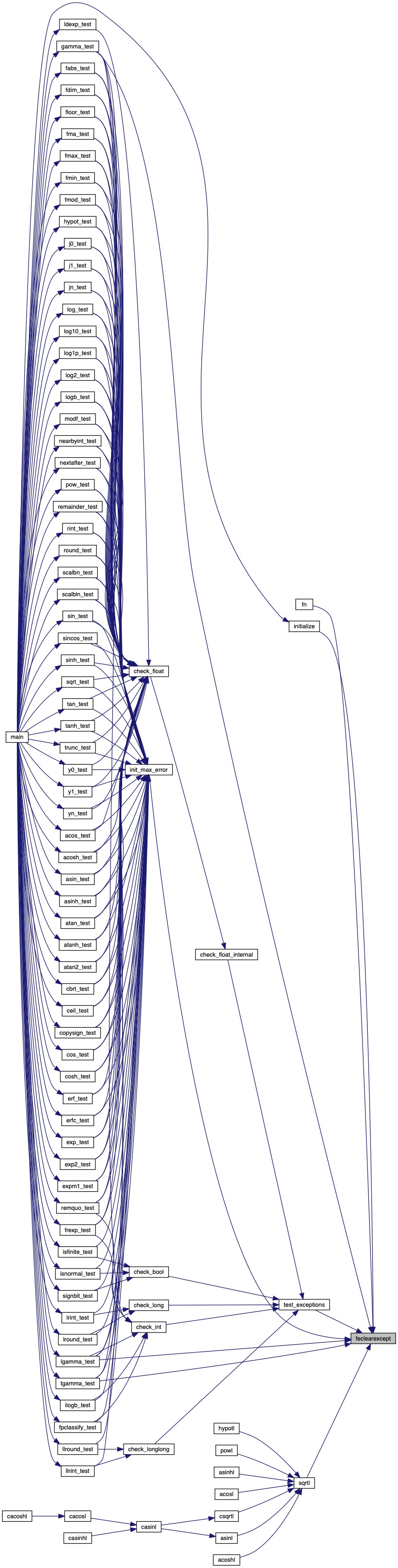 References __fnclex, __fnstenv, __ldmxcsr, fenv_t::__mxcsr, __softfloat_float_exception_flags, __softfloat_float_exception_mask, __stmxcsr, fenv_t::__x87, _SSE_EMASK_SHIFT, FE_ALL_EXCEPT, and fegetenv().